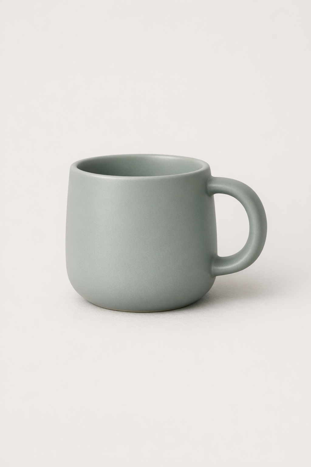 A matte ceramic mug with a balanced weight and comfortable grip. Designed for coffee, tea, and the sort of thinking that deserves a little ceremony.
